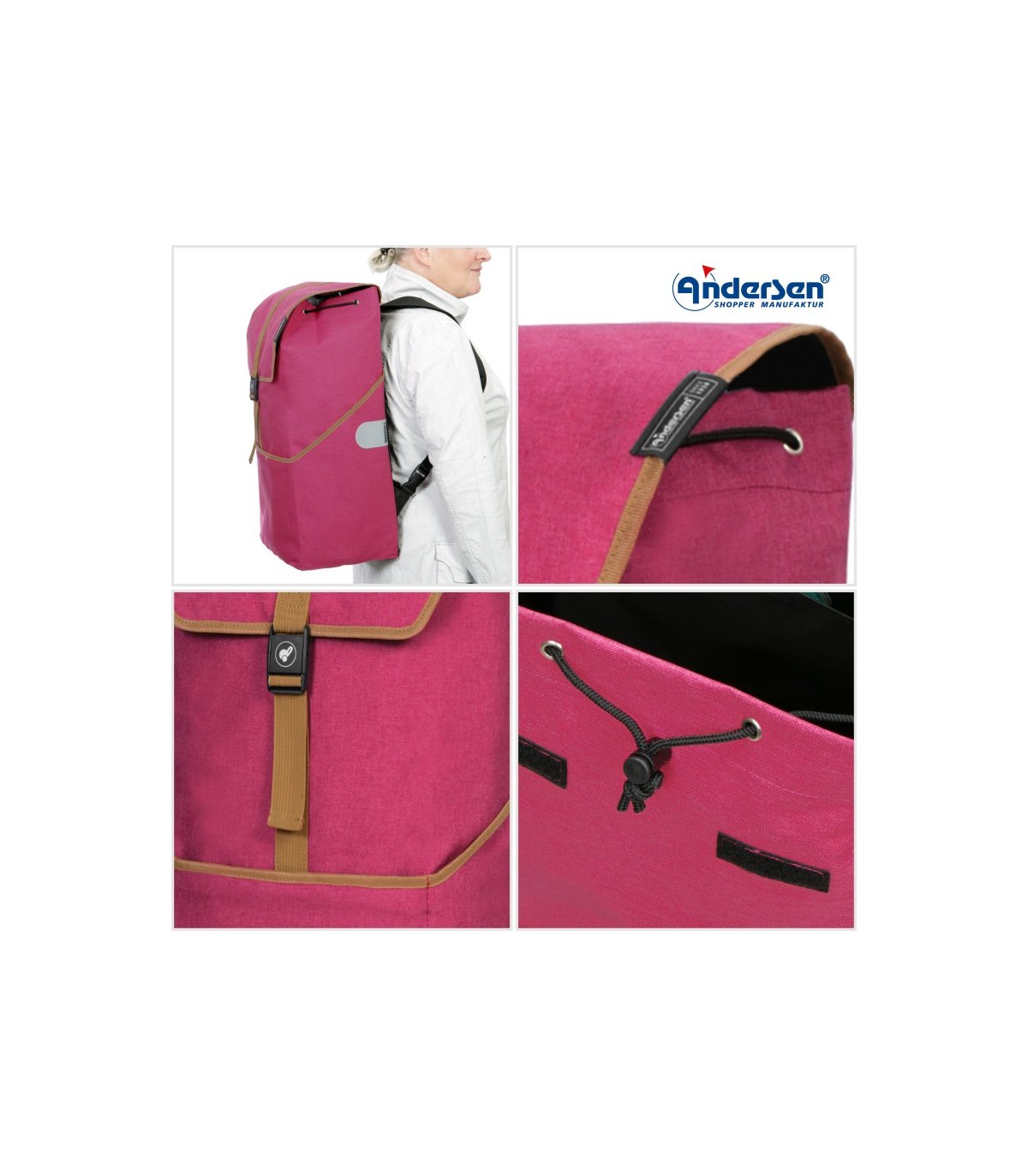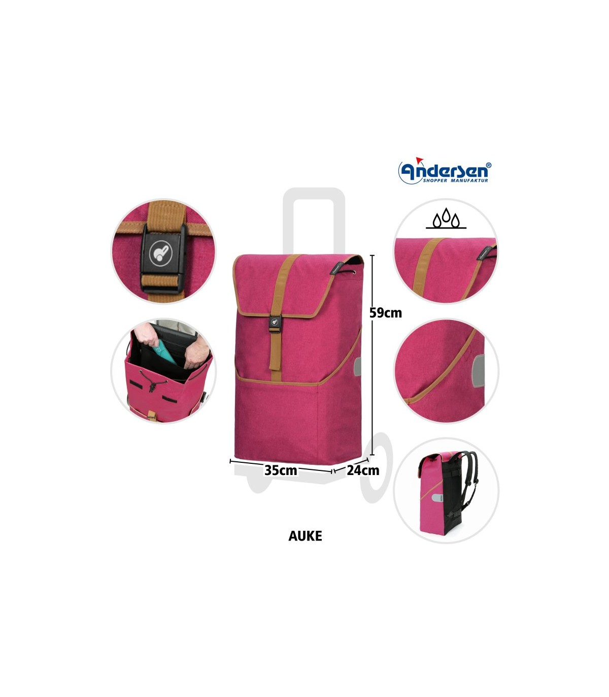 Grâce à son design moderne et à son sac Auke décliné en couleurs rubis et lilas, ce chariot de courses 2 roues apporte une touche de fraîcheur à toutes vos sorties.